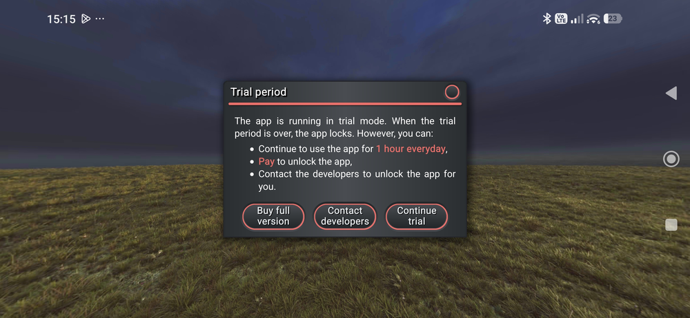 können wir sie intensiv testen, indem wir auf Continue trial tippen: