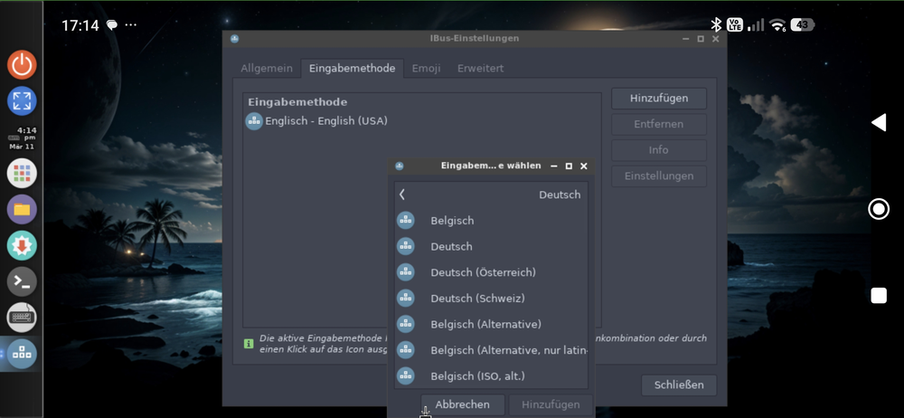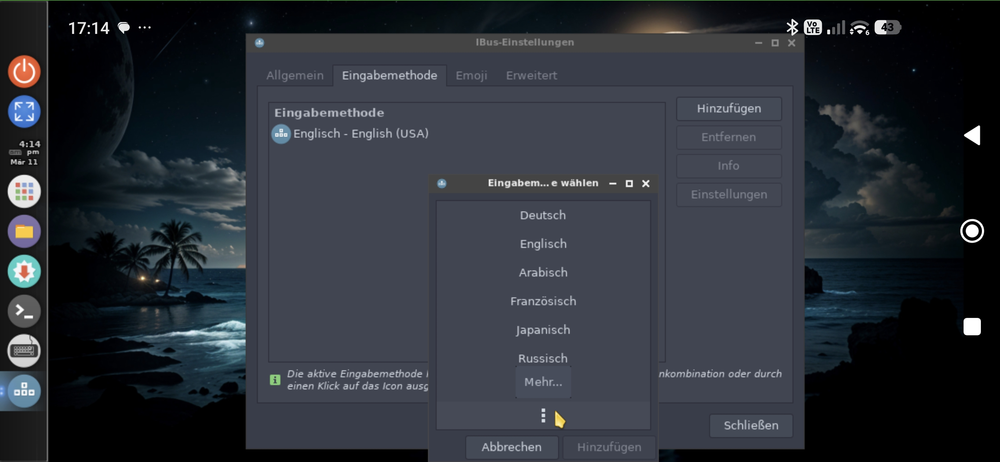 Dazu tippen wir auf das gepunktete Icon, dann auf Systemwerkzeuge, Einstellungen und dann auf Add/Remove keyboard layouts: