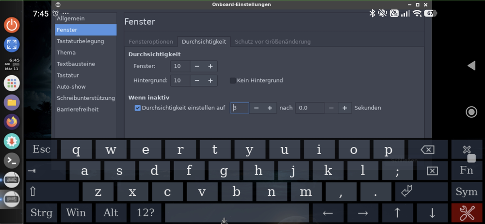 In den Onboard-Einstellungen tippen wir links auf Fenster und dann auf den Reiter Durchsichtigkeit.