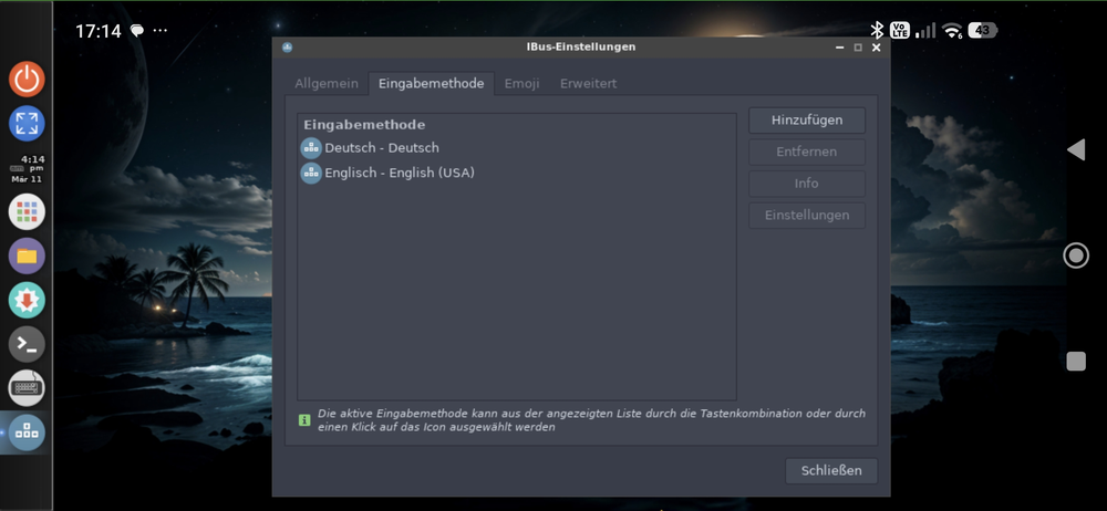 Damit das deutsche Layout genutzt wird, tippen wir nun auf das englische Layout und dann rechts auf Entfernen: