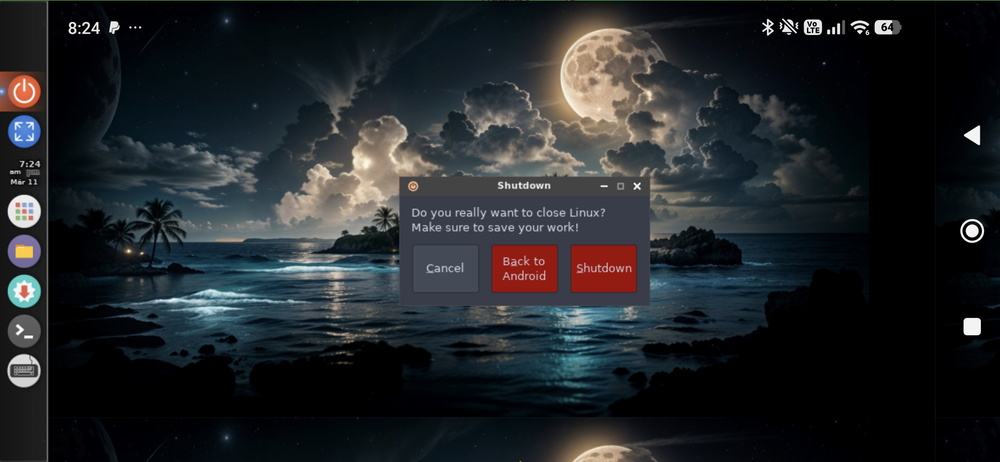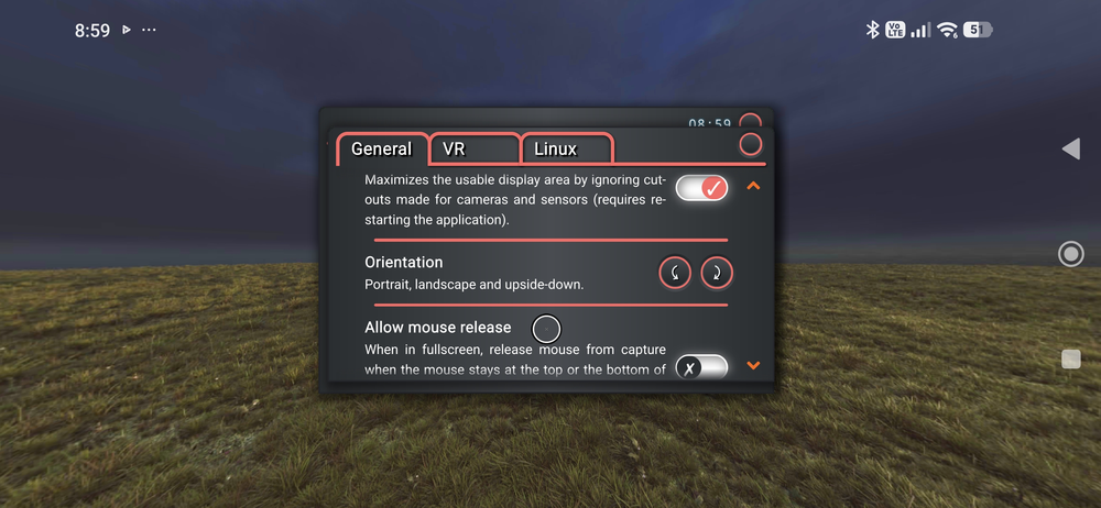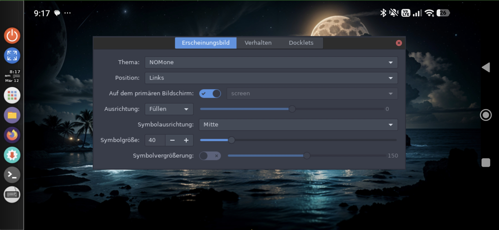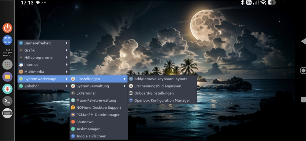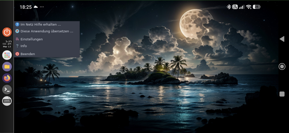 Nachdem wir die Gesten bestätigt haben, erscheint der Linux-Desktop im Querformat.