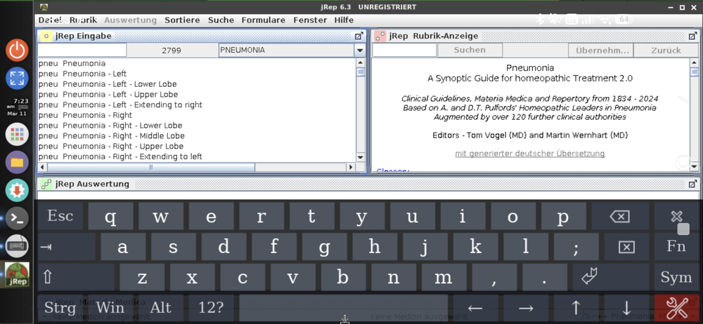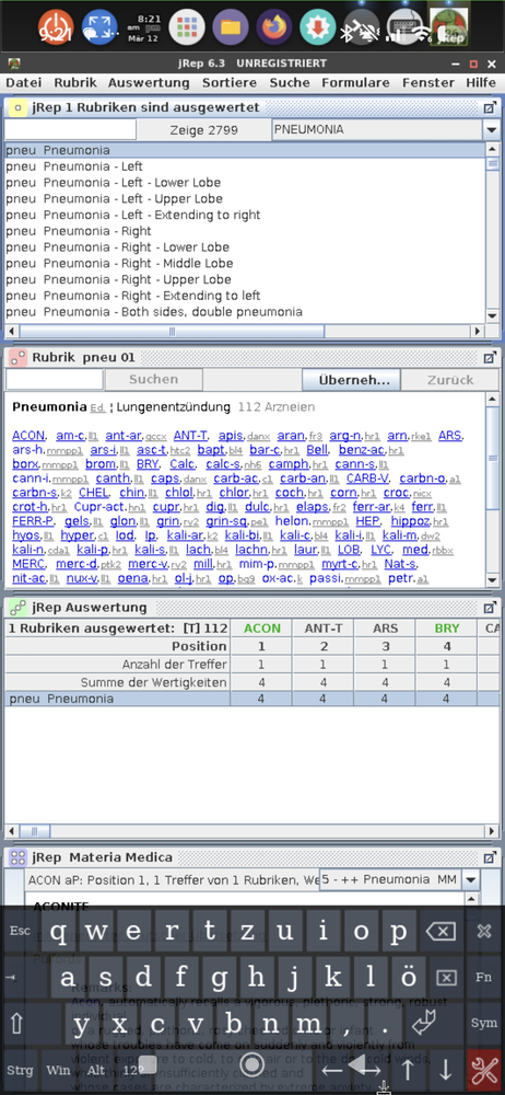 Über das Menü Hilfe in den Einstellungen können wir noch die Materia-Medica-Spalten auf 1 reduzieren.