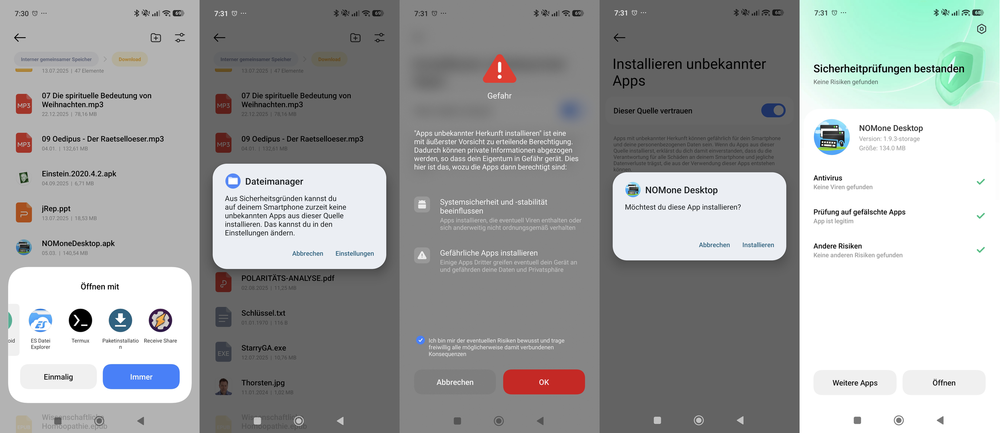 ansonsten bitte NOMone Desktop von der Webseite installieren und bei Storage Permission den Zugriff erlauben (s.o.)