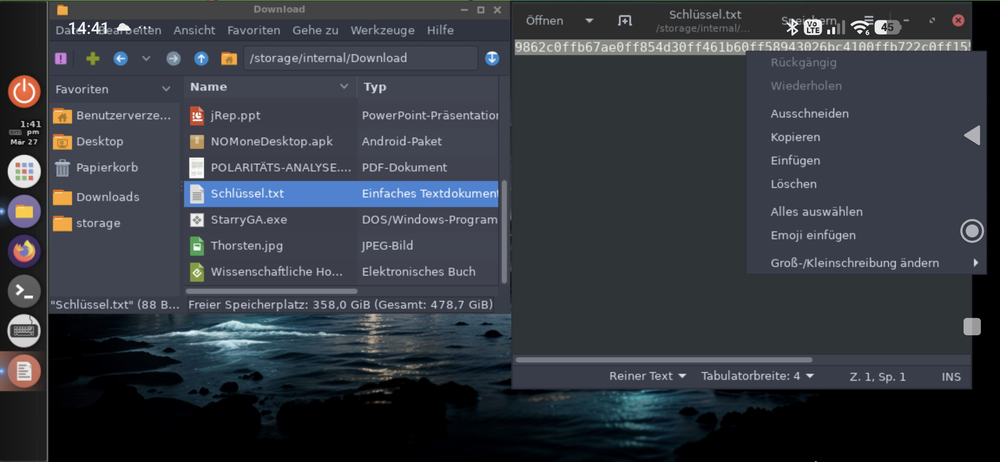 Ich schicke dann eine Datei Schlüssel.txt zu, die unter Android im Download-Ordner gespeichert werden sollte.