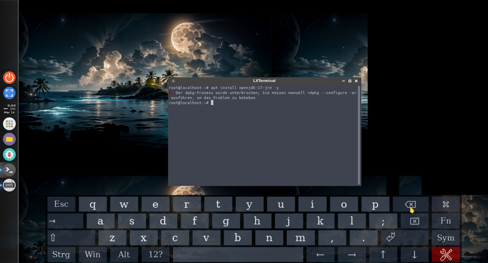 Sollte es zu der Fehlermeldung 'Der dpkg-Prozess wurde unterbrochen' kommen, geben wir dpkg --configure -a und Enter ein.