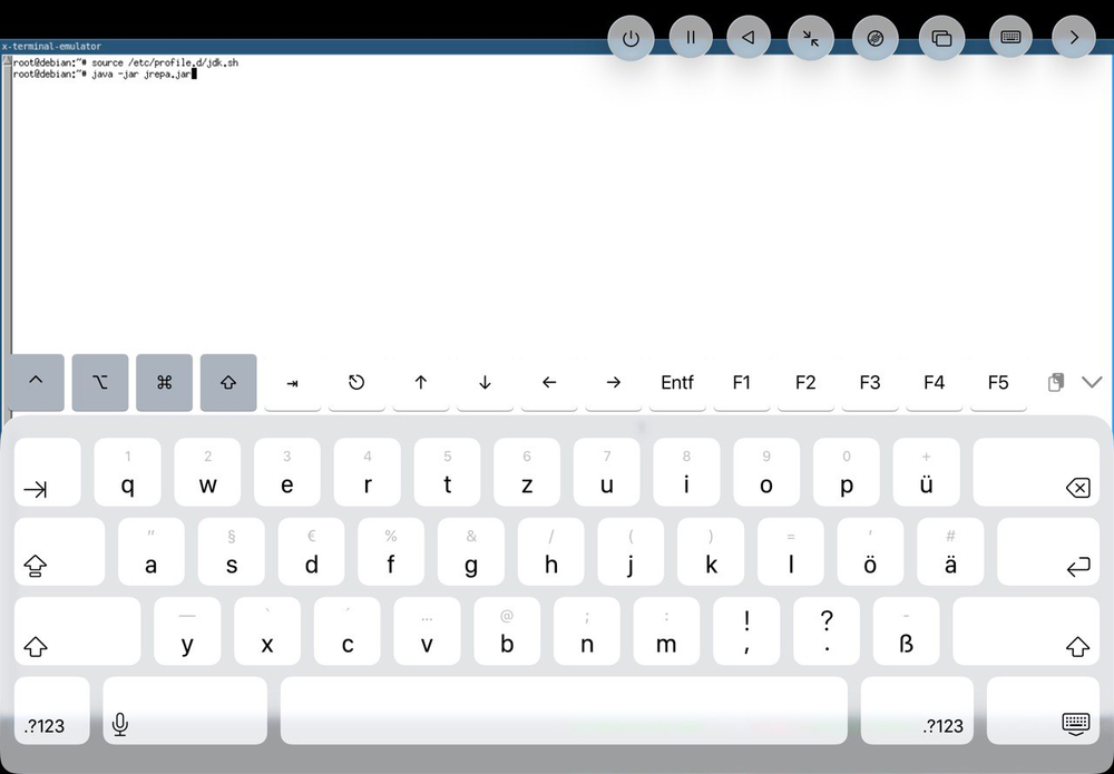 Von daher nutzen wir bis dahin ein älteres Linux unter iOS, worin ich bereits Java installiert und jRep geladen habe.