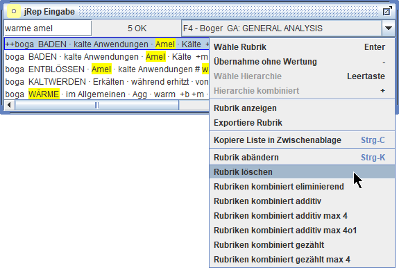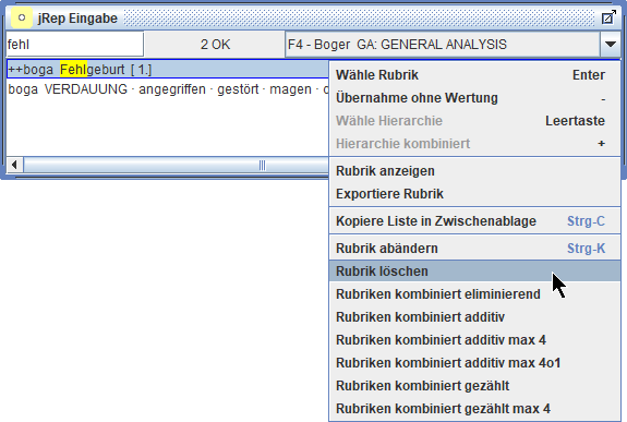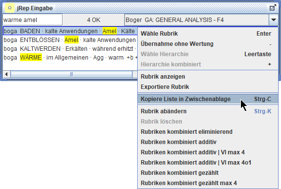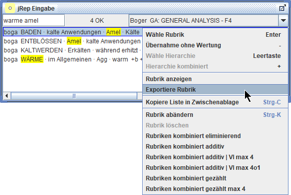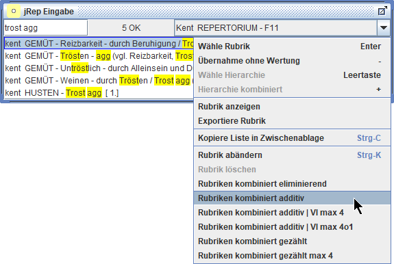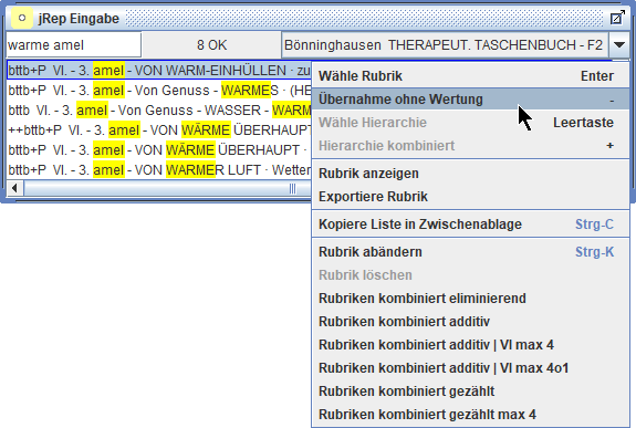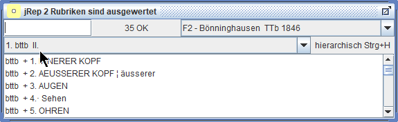 Wir können auch Rubriken aus verschiedenen Repertoriums-Dateien in eine Auswertung übernehmen und