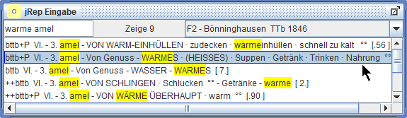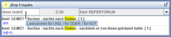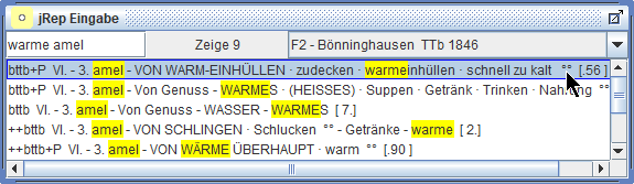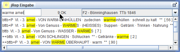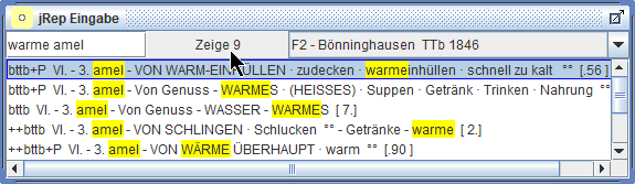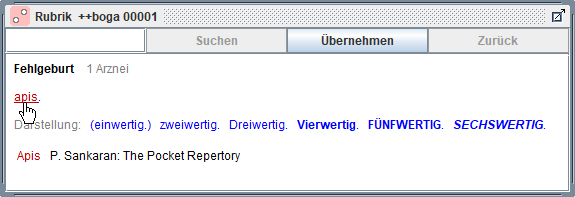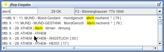 Wir können nun nach bestimmten Rubriken in der aktuellen Repertoriums-Datei suchen,