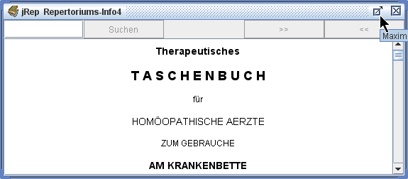 Die Repertoriums-Info können wie alle zusätzlichen Fenster, die rechts oben ein ⊠ haben