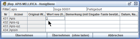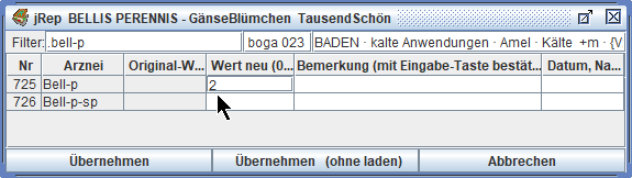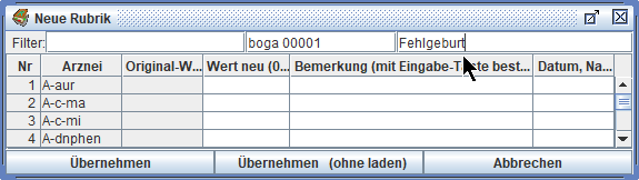 Durch Eingaben in der 3. Spalte können wir neue Arzneien eintragen.
