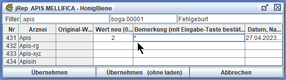 Als Bemerkungs-Vorgabe wird ein * eingetragen, den wir einfach überschreiben können.