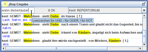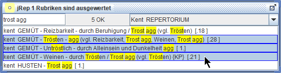 jRep kann bis zu 33 interne und 9 externe, eigene Repertorien verwalten.