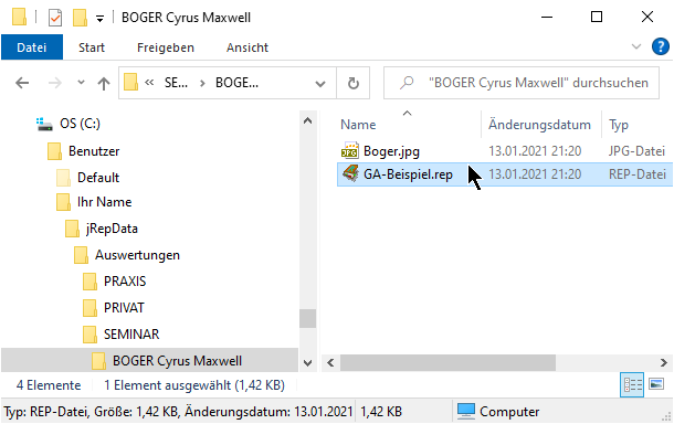 jRep startet nach dem Beenden mit der jeweils letzten Einstellung.