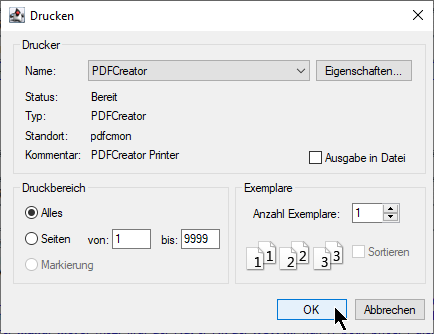 mit der ESCape-Taste oder Klick auf das ⊠ geschlossen werden.