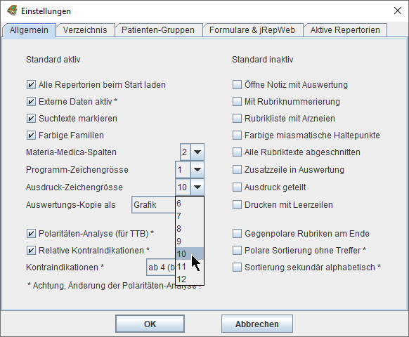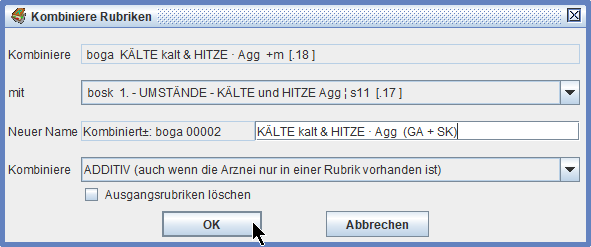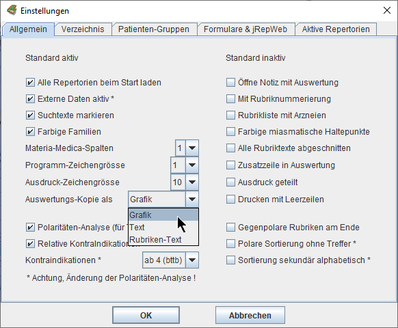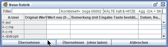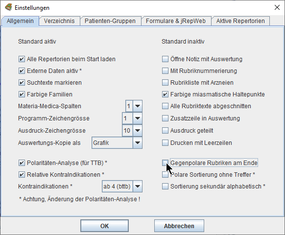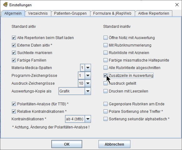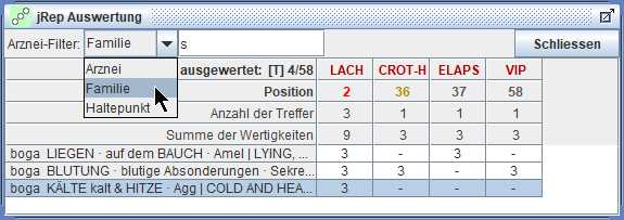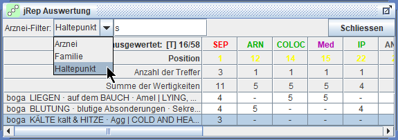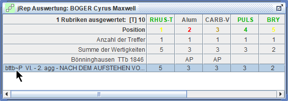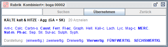 Wir können das Mitwerten dieser zweiwertigen Arzneien aus- und einschalten mit Strg/ctrl+B(önninghausen) -
