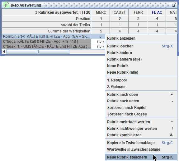 Dabei berücksichtigt jRep auch die Anzahl der Treffer in übernommenen, einfachen Rubriken ohne gegenpolare Rubrik und