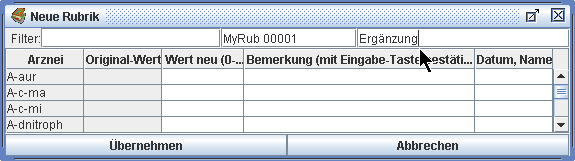 Um weitere Arzneien in der Auswertung zu sehen, ohne die Rubrik-Texte aus dem Blick zu verlieren,