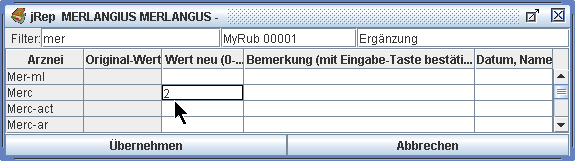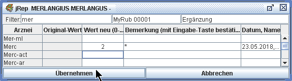 welches den Eintrag der ersten Arznei(en) in der Auswertung anzeigt.