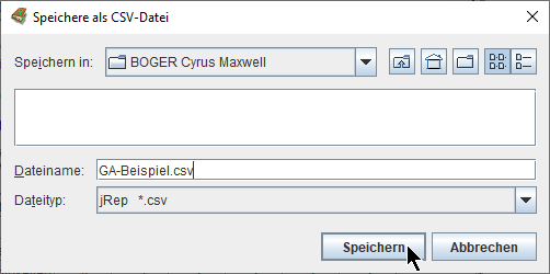in einen Ordner und unter einem Namen unserer Wahl als CSV-Datei SPEICHERN:
