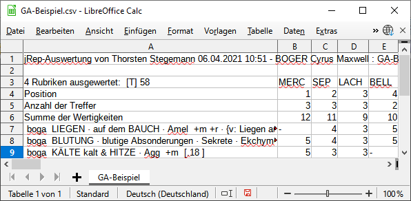 Eine vorübergehende Sortierung der Auswertung nach den Wertigkeiten der markierten Rubrik erreichen wir mit Strg/ctrl+R(ubrik),
