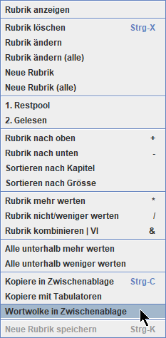 Darüber hinaus können die Rubriken über das Kontext-Menü der unteren Auswertung auch