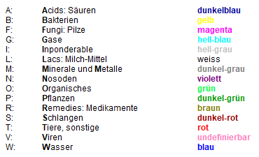 In diesen Farben können wir uns die Arznei-Positionen einfärben lassen,