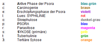 AntiPsorischen: AP, AntiSykotischen: AS und AntiLuetischen: AL (= antisyphilitischen) Arzneien nach Hahnemann.
