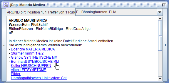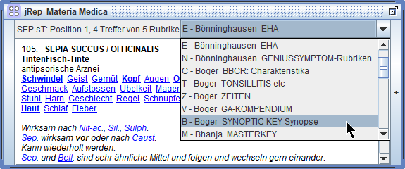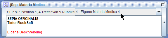 Um die Änderungen zu laden, starten wir jRep neu und wählen die entsprechende Eigene Materia Medica: