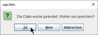 Es erfolgt dann die Abfrage, ob Dateiänderungen gespeichert werden sollen, was wir bejahen.