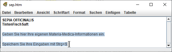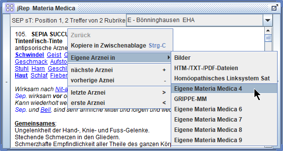 klicken wir die die betreffende Arznei im Materia-Medica-Fenster mit der rechten Maustaste an und