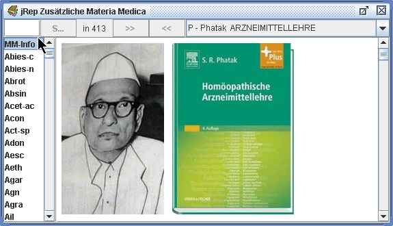 welche Materia-Medica: MM aktuell angezeigt wird.