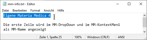 Wir können uns INFORMATIONEN zur aktuellen Materia-Medica mit Strg/ctrl+Z oder über das Menü 'Hilfe' anzeigen lassen: