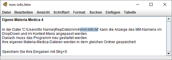 Dazu öffnen wir bei Bedarf die Datei 'mm-info.txt' in dem entsprechenden Verzeichnis: