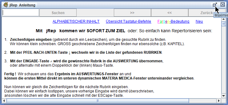 Diese Anleitung erläutert die Benutzung des Homöopathie-Programmes jRep 6 für WINDOWS, macOS und Linux
