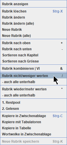 Rubrik in Auswertung geringer bzw. nicht werten 3.6 &-Taste: