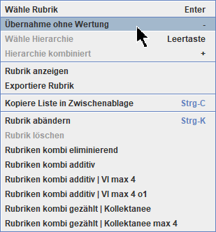 Rubrik in Auswertung kombinieren 3.9 >-Taste: